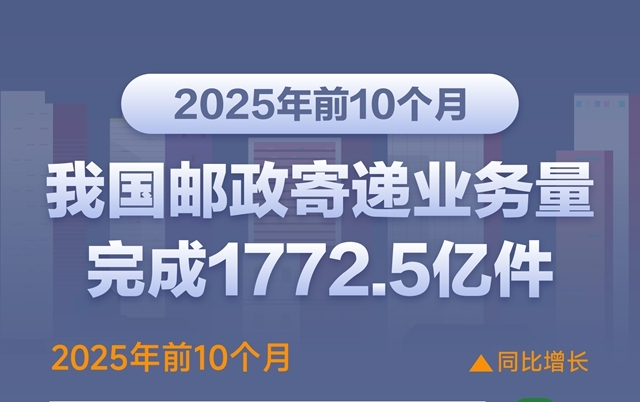 - 2025-11-20图表:2025年前10个月我国邮政寄递业务量完成1772.5亿件