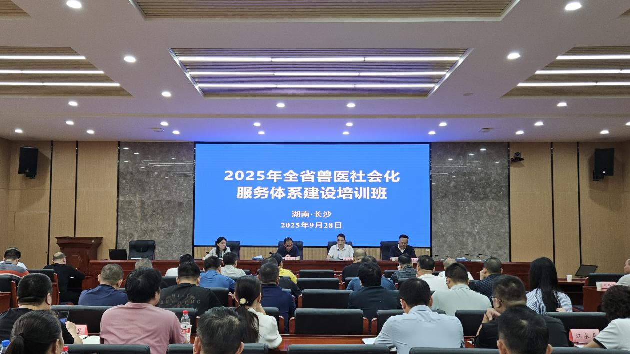 9月28日,省畜牧水产事务中心在长沙举办2025年全省兽医社会化服务体系建设培训班。38个县市区的畜牧兽医部门和部分兽医社会化服务组织相关负责人参训。