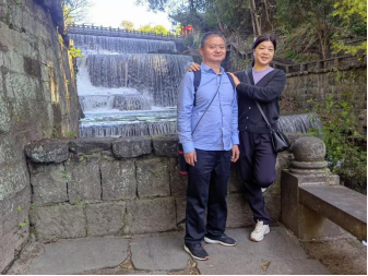 (龚剑新与夫人贺定荣在叠水河瀑布)