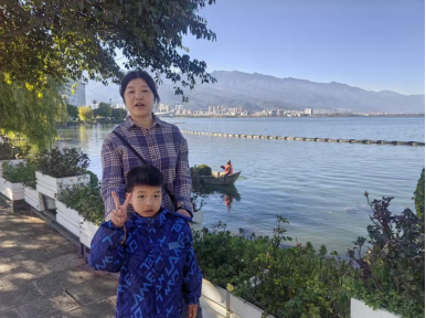 (龚剑新与家人在洱海)
